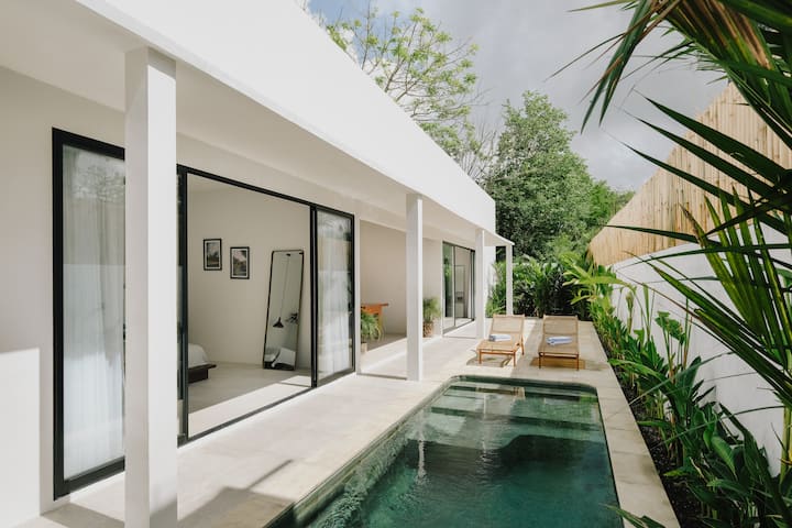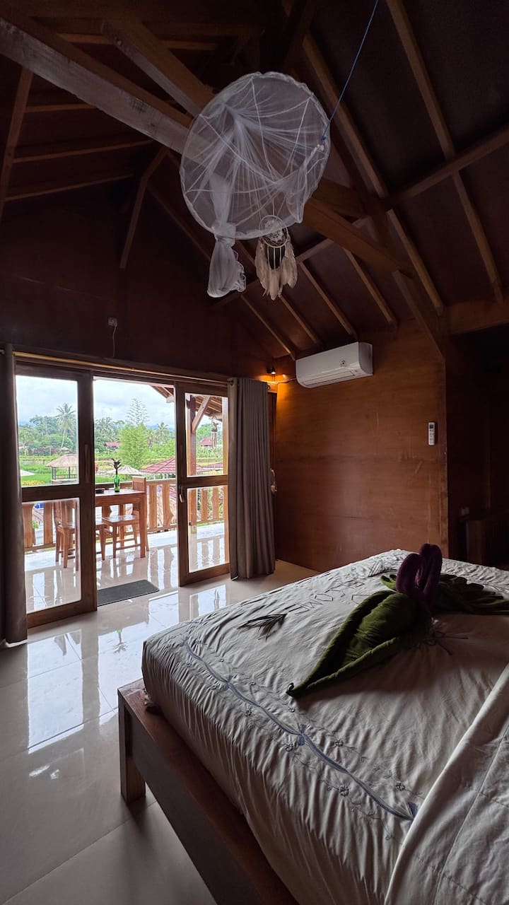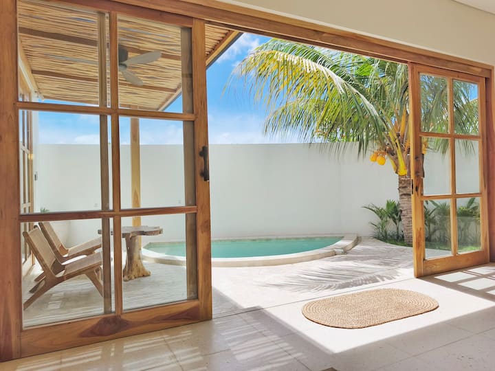 Dvokrevetna soba s bračnim krevetom i pogledom na bazen