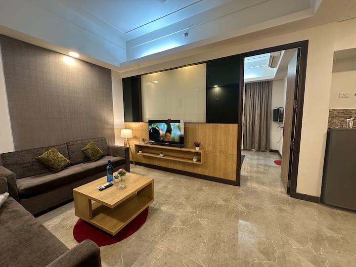 Gurgaon: 1BHK, brzi Wi-Fi, kuhinja, balkon, tržni centar