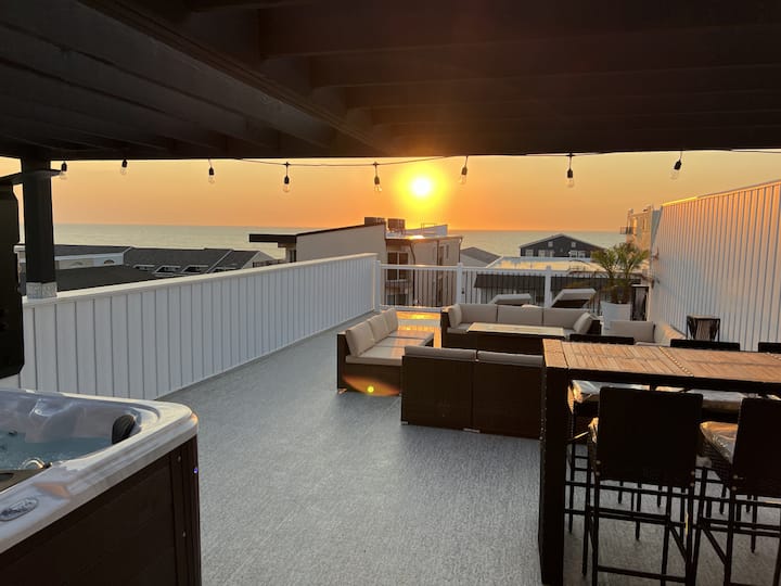 Luksuzna kuća u nizu, pogled na okean, krovna terasa sa hidromasažnom kadom