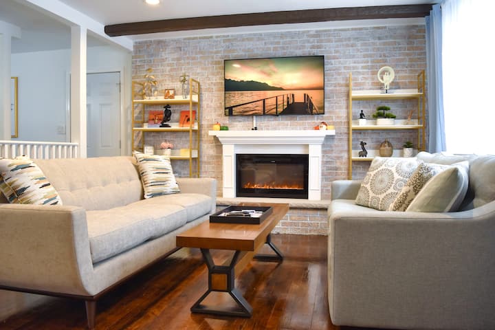 Moderno i udobno utočište u Poconosu sa sobom za igre i karaoke