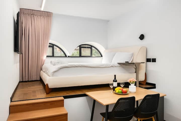Luksuzni studio u srcu Tel Aviva |Bračni krevet (širine 180–200 cm)|Klima-uređaj|Wi-Fi
