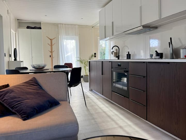 Brvnara blizu prirode sa punjačem za električna vozila, privatnim unutrašnjim dvorištem