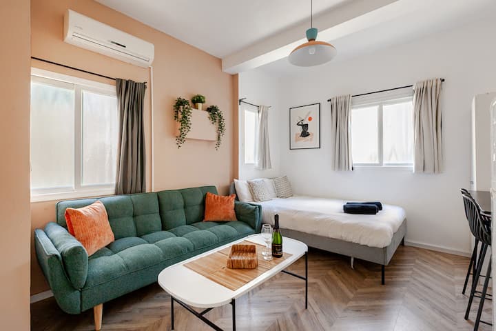 Luksuzni studio u srcu Tel Aviva |Bračni krevet (širine 180–200 cm)|Klima-uređaj|Wi-Fi