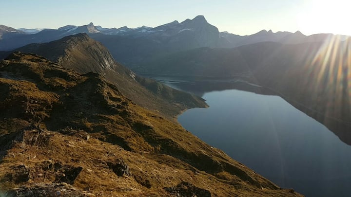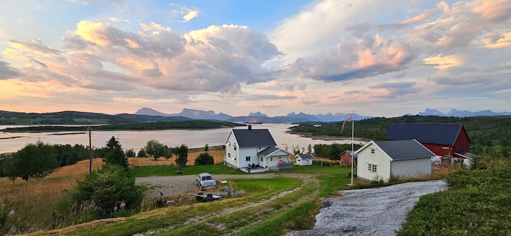 Brvnara na Haukøyu sa pogledom na more i pogledom na stetind