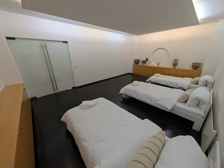 Velika spavaća soba, sa klima-uređajem i TV-om.
