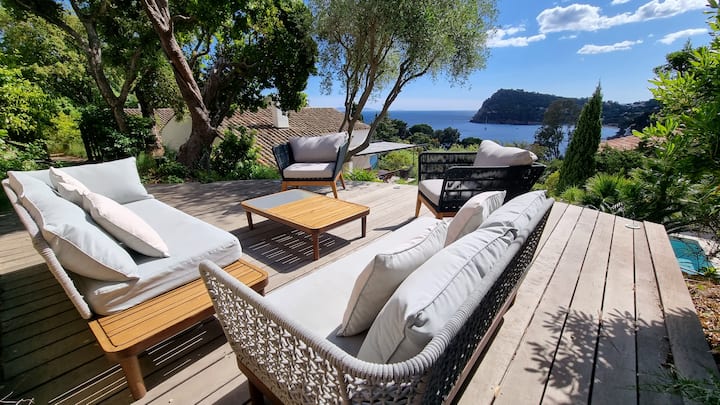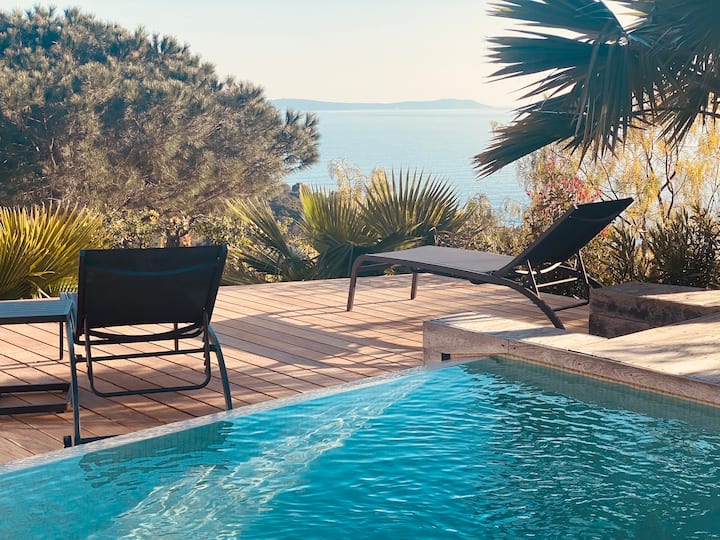 Vila sa pogledom na more od 180°, plaža Pramousquier na 500 m