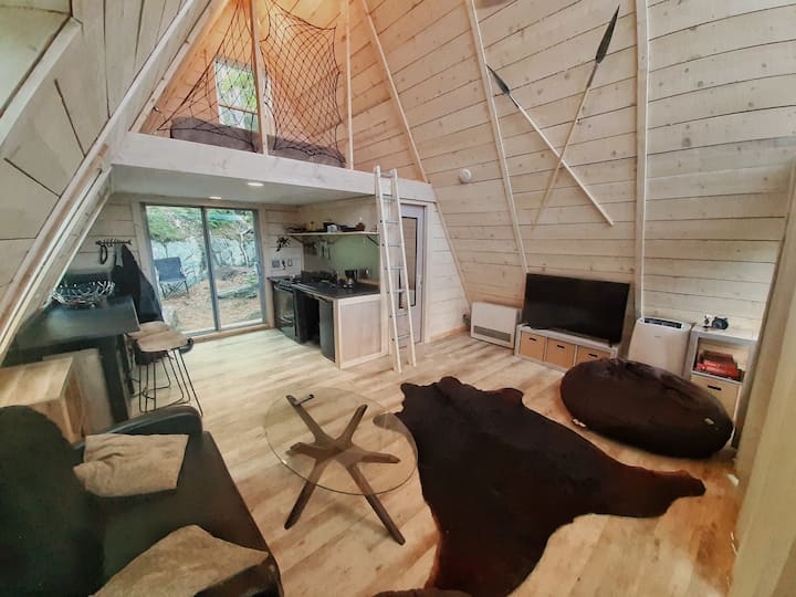 Brvnara u obliku slova A pored zaliva sa kajakom!