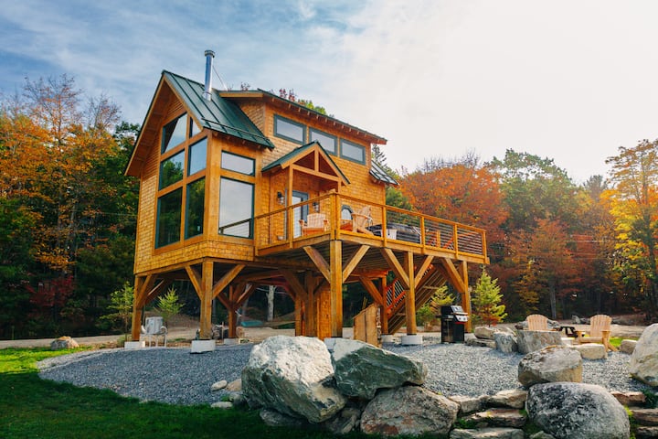 Pogled na rijeku | Privatna hidromasažna kada | Poplar Treehouse