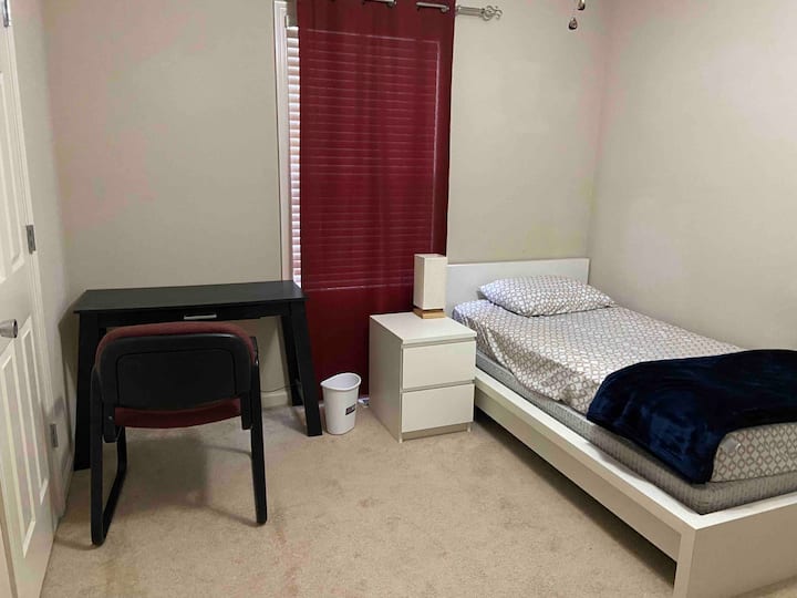 Vesela, mirna soba sa zajedničkim kupatilom.