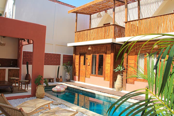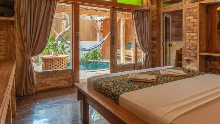 Deluks bungalov sa pogledom na plažu, zalazak sunca i more