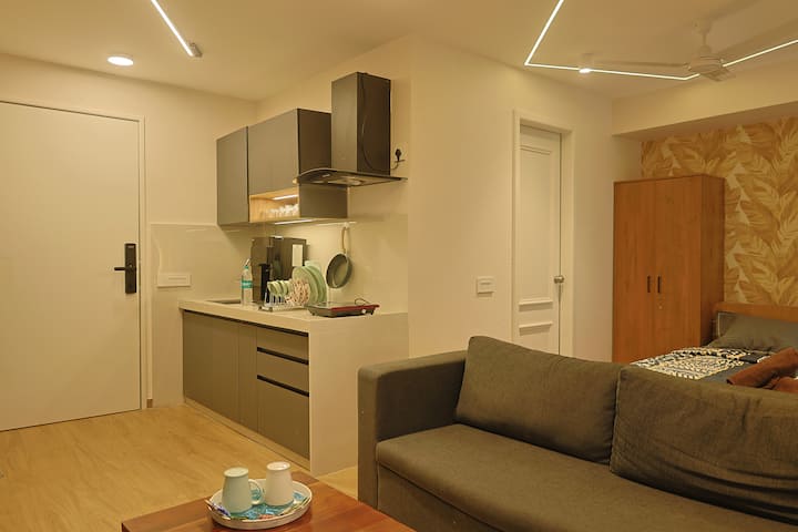Studio u blizini aerodroma Pune l Kuhinja + balkon
