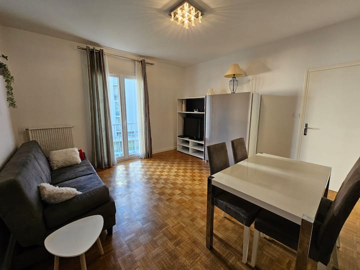 Svijetli dvosobni stan. Pogled na Pirineje.