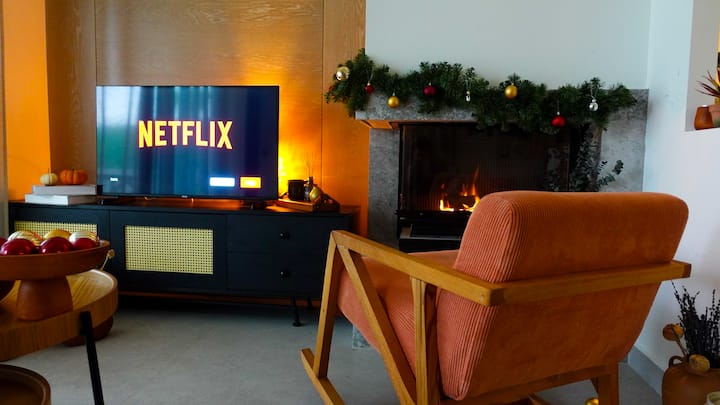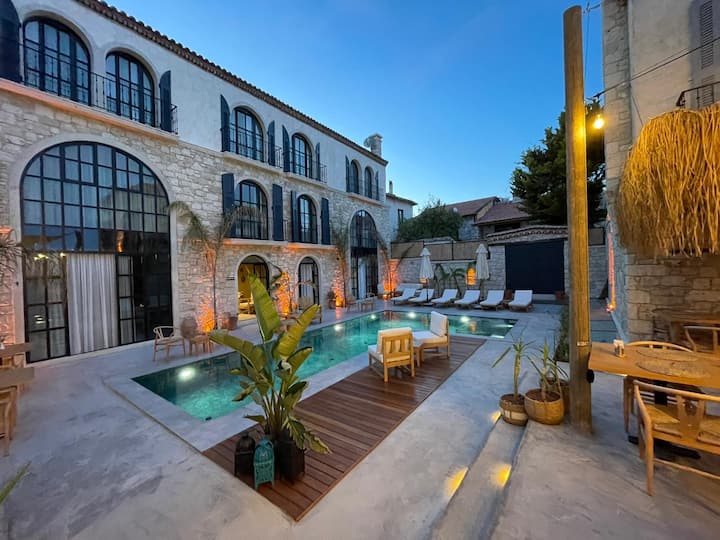 Deluks soba sa kupatilom i kaminom sa pogledom na bazen