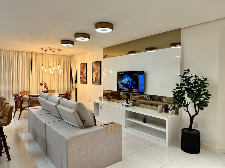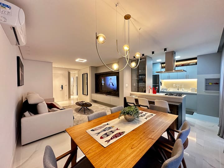 Predivan stan uz plažu, potpuno nov. 1 apartman sa bračnim krevetom, podeljen vazduh, pametni TV 32", pola kupatila. 1 spavaća soba sa bračnim krevetom, 32-inčni pametni TV, podeljeni vazduh. Kuhinja sa frižiderom, zamrzivačem, mašinom za pranje i sušenje veša, električnom rernom, mikrotalasnom. Dnevna soba sa sofom, TV 50".