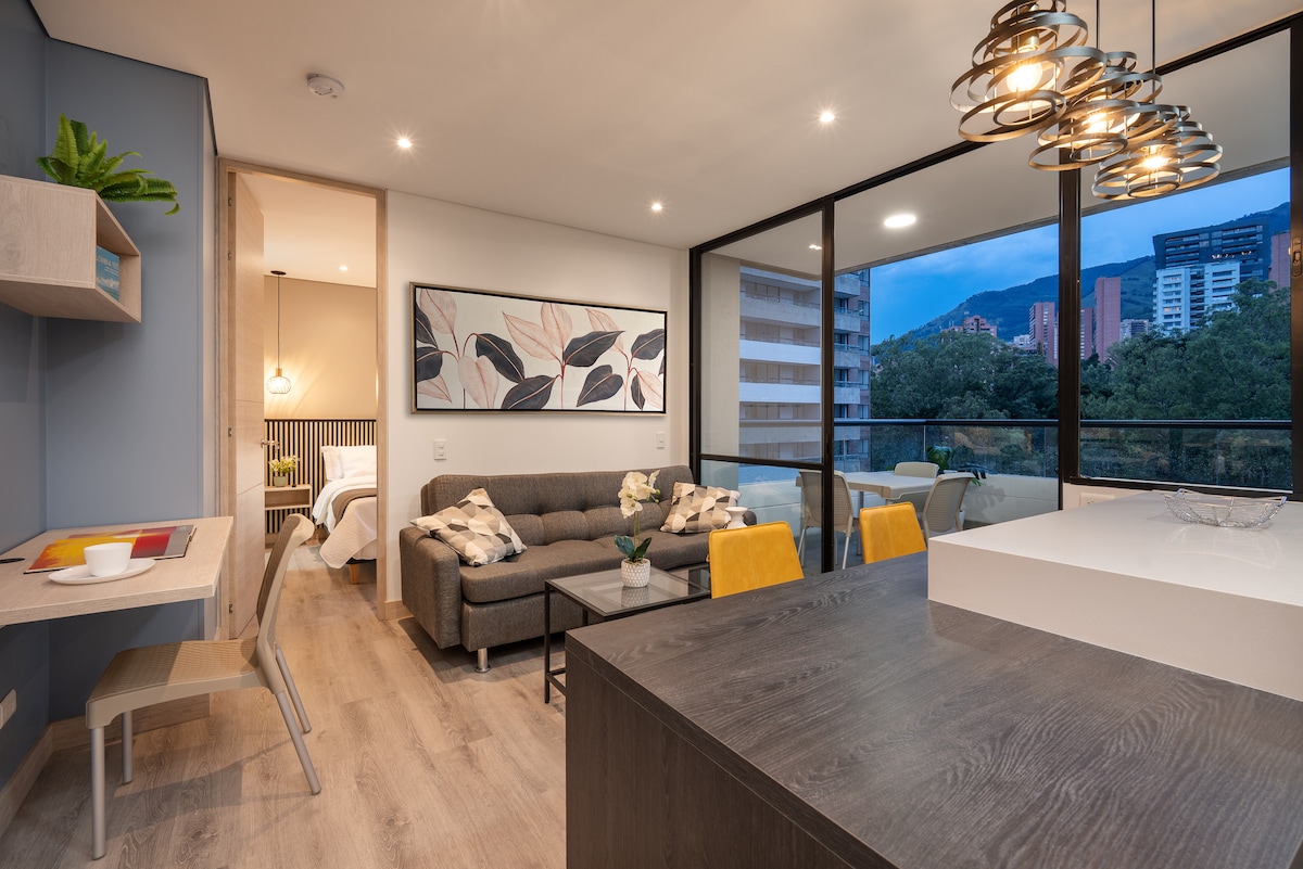 RECENTLY RENOVATED -High-speed internet great for remote work -Brand new A/C -Fully renovated Industrial design apartment -King size bed -Breathtaking views of Medellín (trust me, worthwhile to stay here) -19th floor -Unbeatable location in Poblado near to Provenza and Lleras Park -Modern amenities -Spacious living area -Smart TV x 2 -Fully equipped kitchen -Washer & Dryer Tower -Pool -Gym -Coworking space -Restaurant inside the building -Private parking -Self check-in -24/7 Security