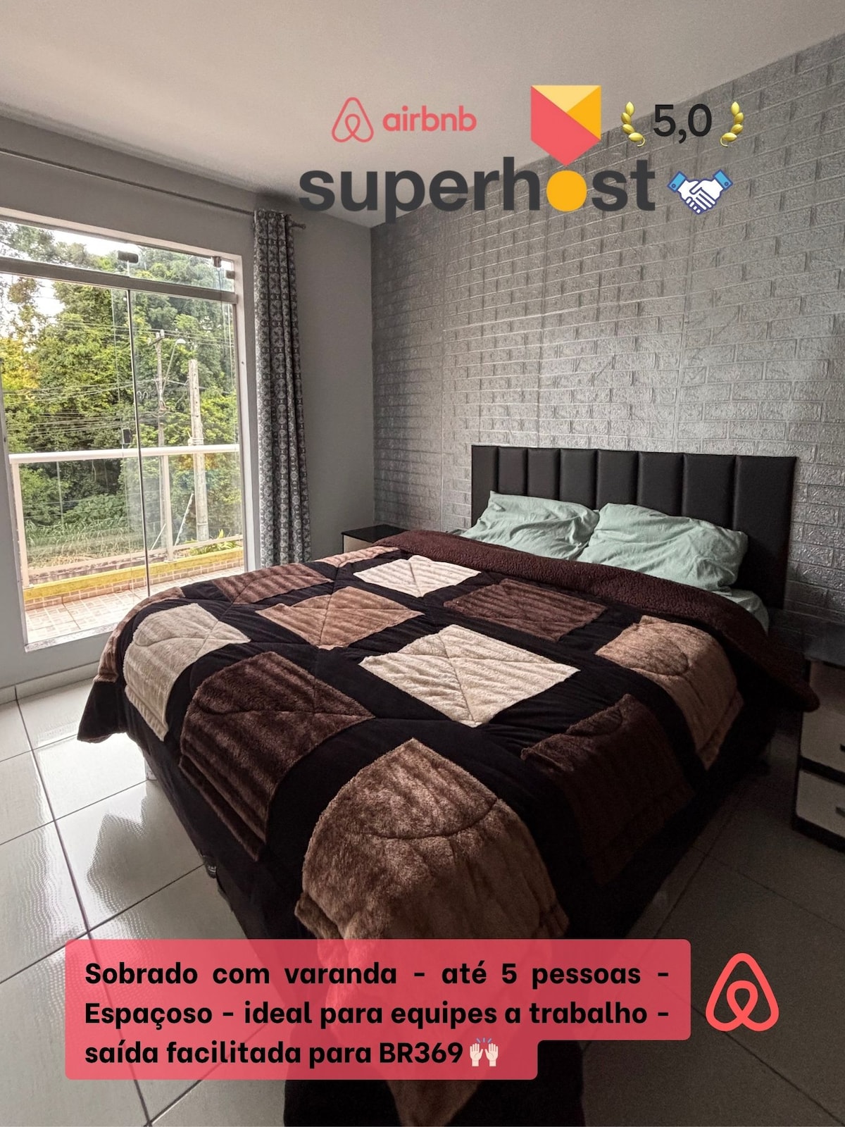 Queremos te hospedar com todo aconchego e conforto de nosso sobrado, te proporcionando uma localização ótima, próximo ao Honpar, Salão testemunha de Jeová, Mercado. Nosso sobrado tem dois quartos, um sendo suíte com uma cama de casal e uma de solteiro e o outro com uma cama de casal e sacada, 1 banheiro com chuveiro na suíte e 1 lavabo, uma sala completa, lavanderia completa, cozinha completa com utensílios de cozinha, um espaço no fundo e garagem para um carro porte médio