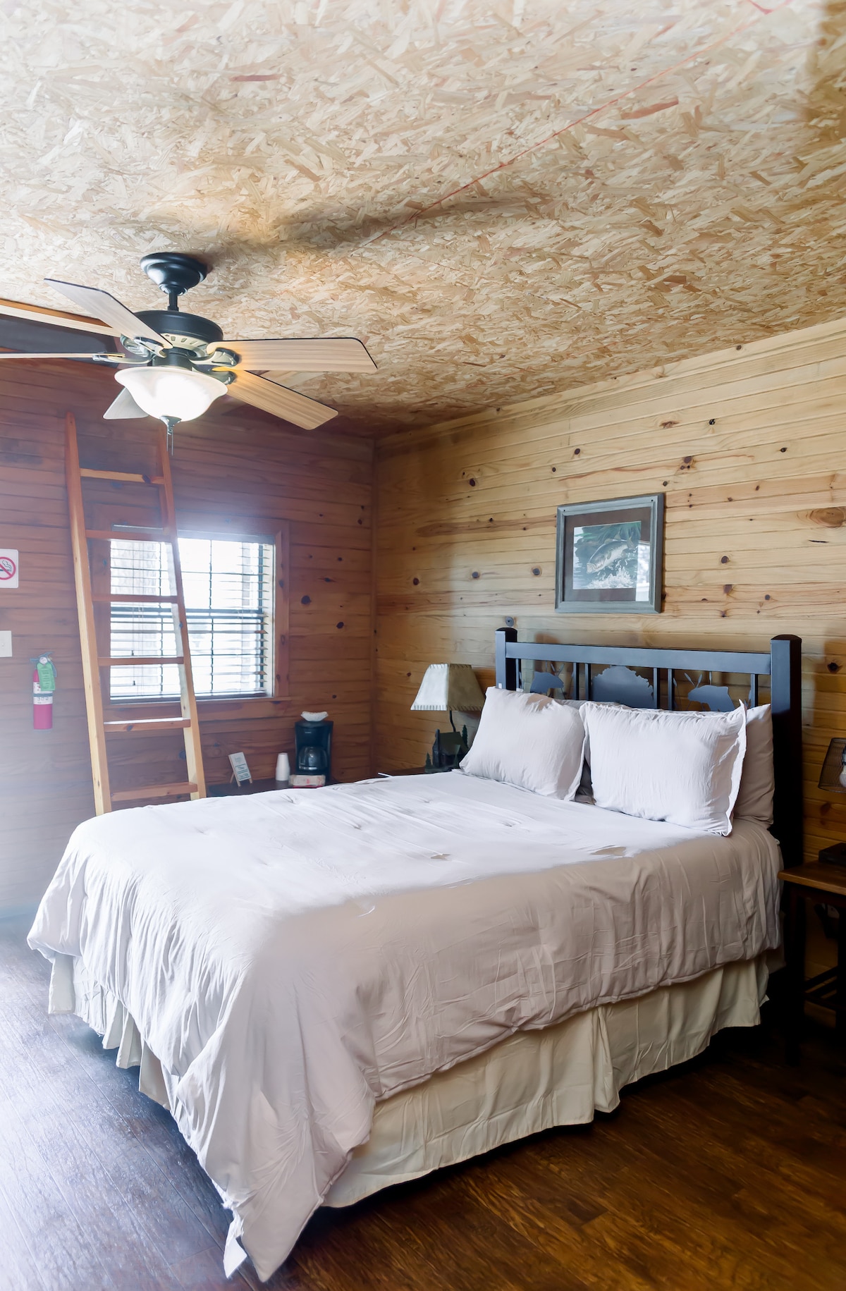 Sjednite se i opustite se u ovoj elegantnoj cedrovoj brvnari sa 1 sobom. Pijuckajte kafu na natkrivenom tremu i uživajte u prelepom izlasku sunca iz vašeg pogleda na jezero okružen Nacionalnom šumom Sabine. Obratite pažnju na ćelave orlove. Istražite obližnje uvale iz naših kajaka, skočite u jezero sa naše platforme za plivanje, pecajte sa naših pristaništa ili se izležavajte pored logorske vatre. Toledo Bend Lejk, jedno od vrhunskih jezera za ribolov brancina u zemlji, a imamo i najbolji crappie ribolov odmah ispod naše marine samo nekoliko koraka dalje.