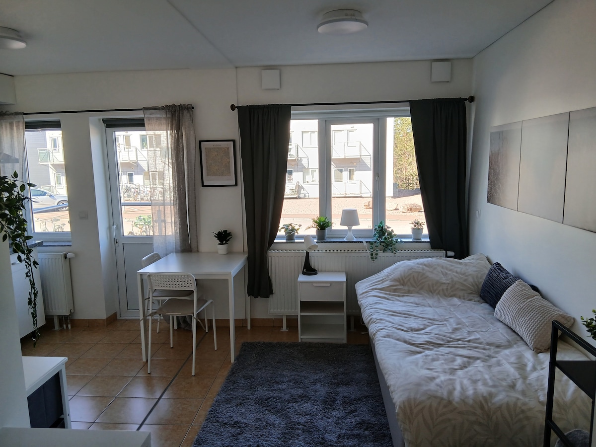 The apartment is located in Lorensberg, a calm and friendly neighbourhood with walking distance to both the city centre and campus, and is perfect for the busy tourist as well as a new student at the booming Karlstad University. The house used to be home to multiple families, and so the apartment comes fully equiped with a kitchen as well as a private bathroom and is closed off from the rest of the house with it’s own entrance. No smoking.