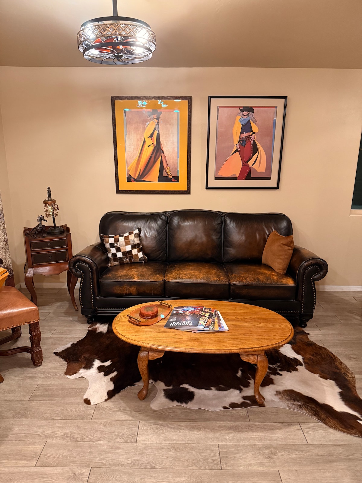 A Elegant Desert Retreat near UofA main gate square and Downtown with fast Wi-Fi, private parking space, a clean relaxing layout ideal for short or extended stays. Enjoy a comfortable king suite and Queen suite. Fully stocked kitchen and coffee bar, and a quiet workspace in each room. The front porch sitting area offers a relaxing spot with a firepit, after a busy day. Minutes to Saguaro National Park, Dining, Cafés, Banner Hospital, and Gem Show venues. Self-check-in and pet-friendly.