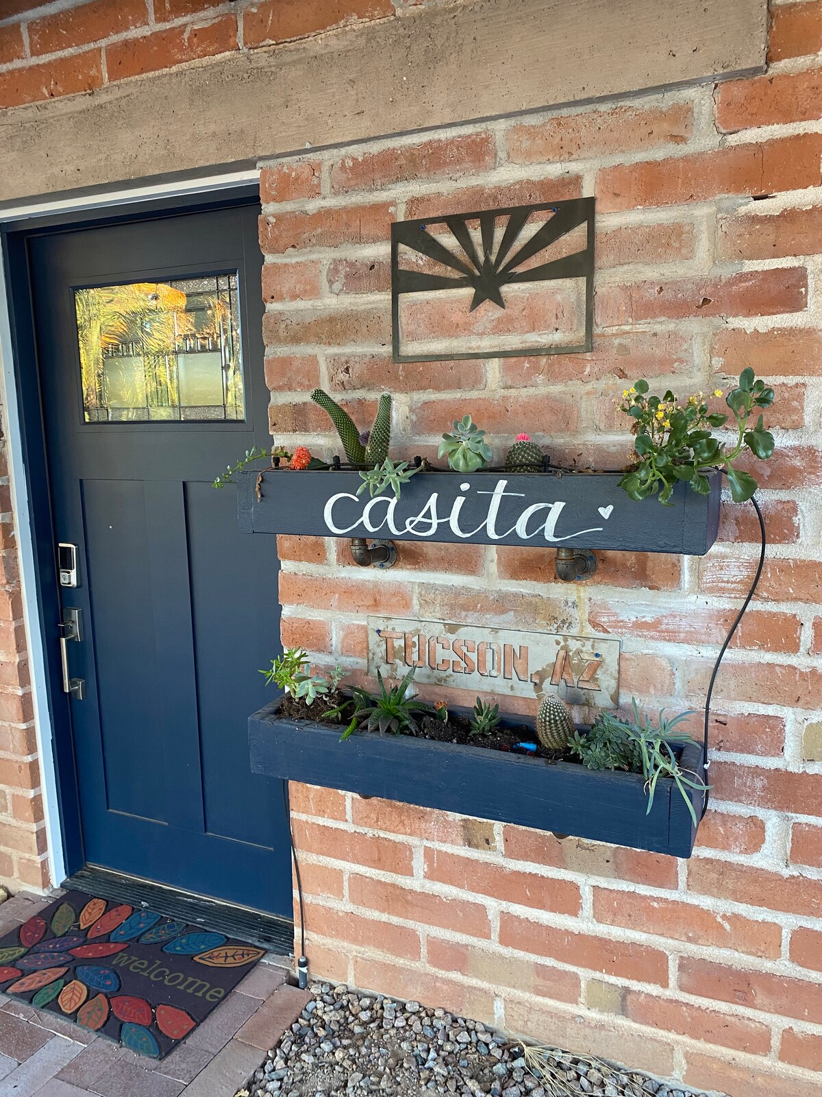 Enjoy a relaxing stay in this private guest suite just 3.5 miles west of downtown. With your own private entrance in this mid-century desert home you will enjoy listening to mourning doves coo as you cool off in the outdoor shower and soak in the private hot tub. The gas fire-pit keeps you cozy and warm on cool desert nights and sets the pace for a quiet and peaceful stay under the stars. Close to the AZ-Sonora Desert Museum, Saguaro Monument West, UofA, UNESCO famed eateries, museums and more!