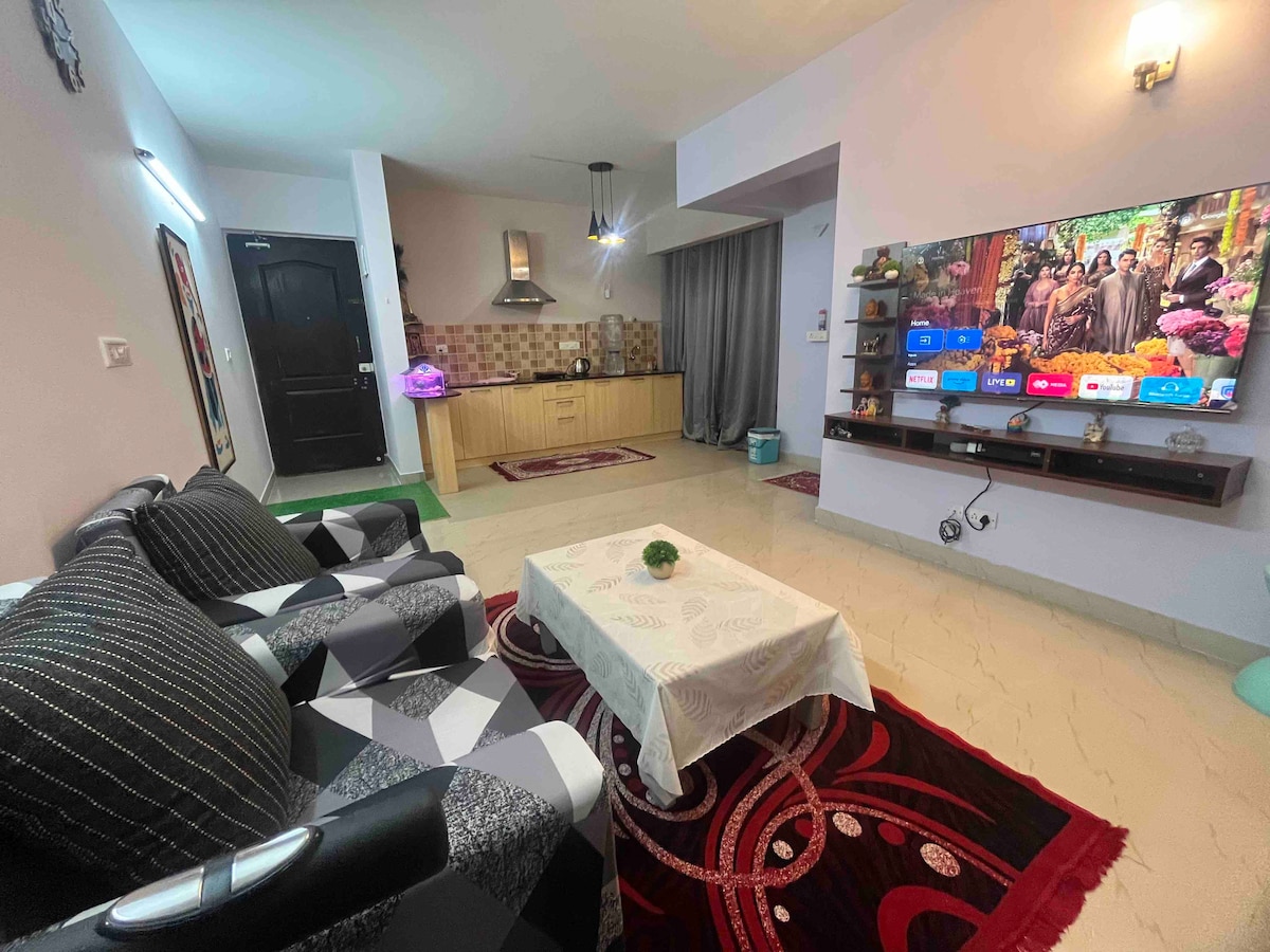 Doživite prefinjenu udobnost u našem elegantnom apartmanu 3BHK na prvom spratu u severnom Bangaloru, idealno smeštenom u blizini tehnološkog parka Manjata, grada Bartija, grada Sobha i glavnih specijalnih ekonomskih zona. Hebal kružni put je udaljen samo 5–6 km, dok je Međunarodni aerodrom Kempegovda udaljen 30 minuta vožnje. Uživajte u prostranom rasporedu, modernim sadržajima i mirnom stambenom okruženju u blizini živopisne kulture grada. Netflix i Amazon Prime su uključeni za vašu zabavu. Savršeno za porodice, poslovna putovanja ili odmor