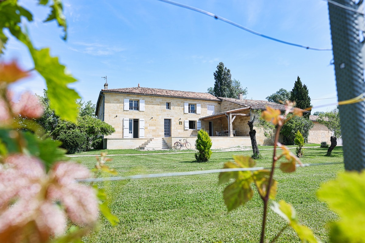 Venez séjourner en famille ou entre amis dans ce château séduisant par son charme et sa situation au sein d'une propriété viticole familiale, avec une belle vue sur une vallée boisée et sur le vignoble de l'Entre Deux Mers . Entrez pour une réelle parenthèse au calme. Une visite de la propriété et ses carrières souterraines vous sera offerte ainsi qu'une dégustation complète des vins! Vous pourrez visiter la région facilement : nous sommes à 30 minutes de Bordeaux et 1 heure de la côte.