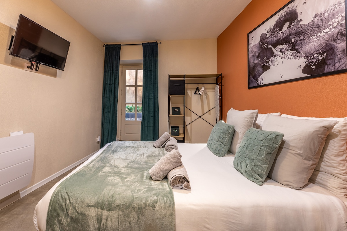 Studio se nalazi u hotelu Grand sa liftom 50 metara od termalnih kupatila odmarališta Aïga. Prostrana garsonjera. - kauč na razvlačenje veličine 80 x 200 cm koji se može pretvoriti u 160 x 200 cm. - opremljena kuhinja, kuvalo za vodu, mikrotalasna rerna, frižider, senseo kafa, toster. - kupatilo sa tuš kabinom, mašina za veš, fen za peškire. Obratite mi se porukom da biste videli datume raspoloživosti.