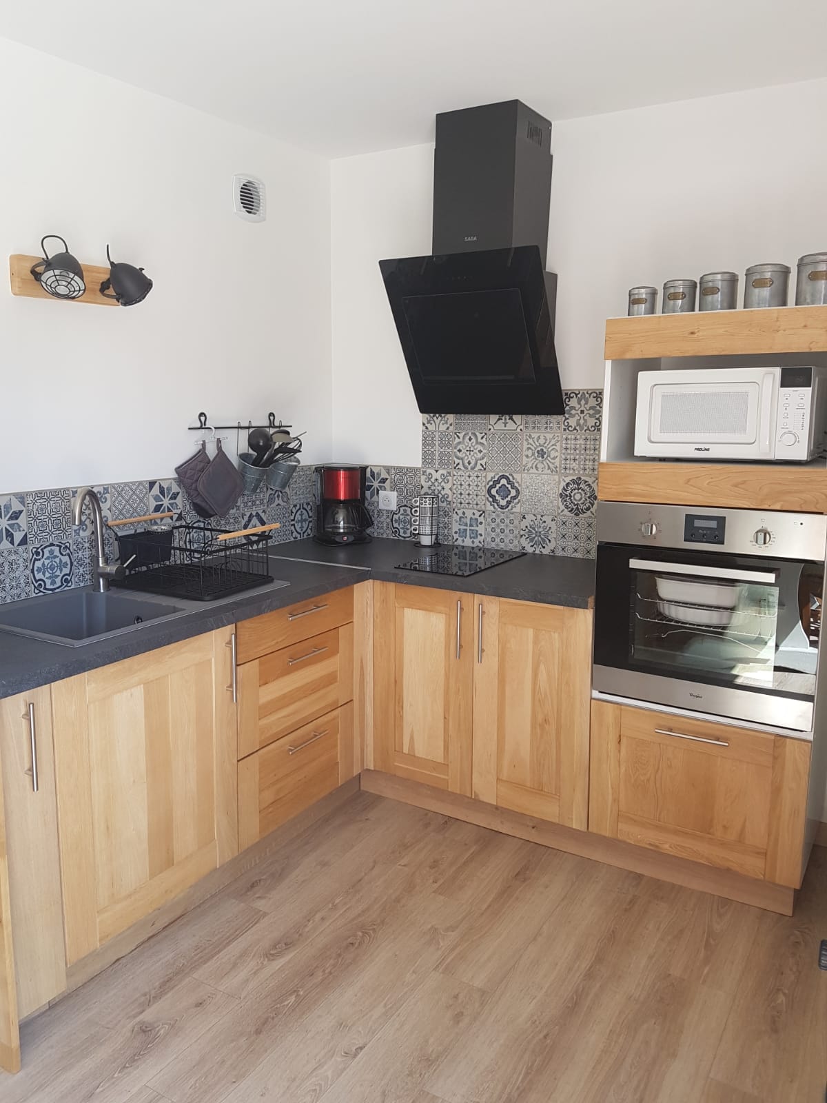 Mala renovirana kuća od 40 m² nalazi se 11 km od plaže i u blizini je nekoliko porodičnih aktivnosti. Sastoji se od: - 1 spavaća soba sa bračnim krevetom i pristup namještenoj terasi za opuštanje uz prve sunčeve zrake ili uživanje u hladu nakon napornog dana. - 1 glavna soba koja se sastoji od opremljene kuhinje, barskog stola sa 4 sjedišta, kauča na razvlačenje sa 2 sjedišta, televizora. - 1 kupatilo: tuš-kabina + mašina za sušenje peškira + umivaonik - 1 WC