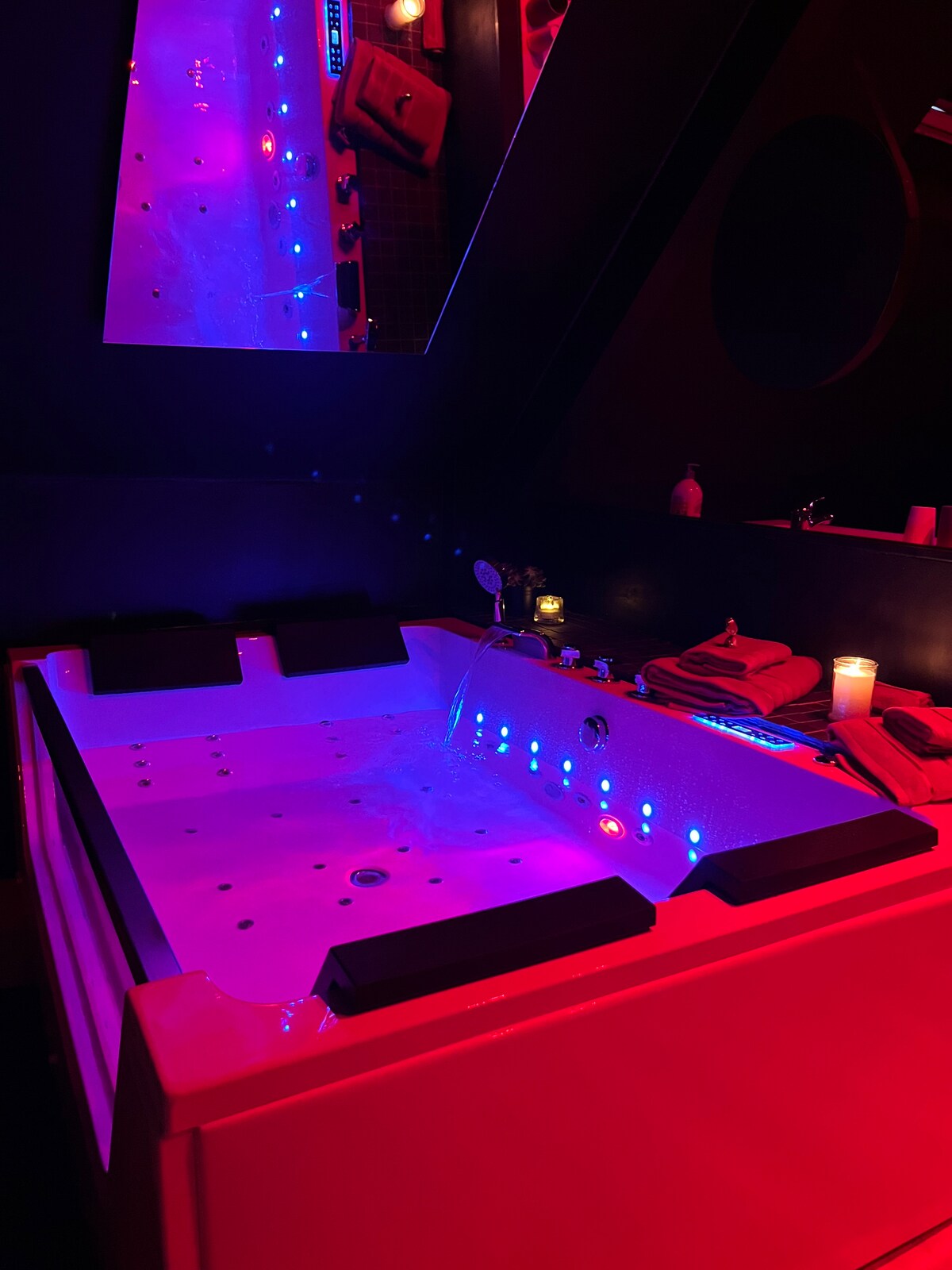 Gite osmišljen da parovima pruži nezaboravan, luksuzan i intiman doživljaj. Smješten u Engleskom kanalu, naš dom vas poziva da pobjegnete u senzualnoj i elegantnoj atmosferi, gdje je svaki detalj pažljivo osmišljen kako bi probudio vaša čula. 🌹💫 🏡 Ova soba ljubavi koja može da primi do 4 osobe samo za vas se sastoji od luksuzne spavaće sobe, prijateljskog dnevnog boravka i dodatne erotske sobe. 🔥🛏️