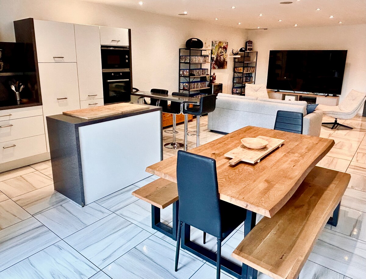 Luksuzni stan od 180 kvadratnih metara koji se savršeno nalazi u samom centru Avinjona, ali u mirnoj ulici bez saobraćaja. Više od 100 recenzija sa 5 zvjezdica! Za osobe sa automobilima, u blizini se nalazi parking pod nadzorom. Nalazi se na pola minuta hoda do centralnog trga Place de l'Horloge i 2 minuta do Palače des Papes. Dizajniran je za parove sa svime što vam treba, uključujući klima-uređaj i brzi Wi-Fi za ljude kojima treba da rade. Jedinstvena mješavina kvaliteta, lokacije i mira.