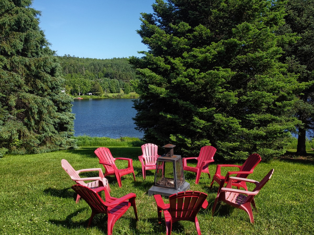 Naša planinska kuća u nordijskoj šumi savršena je za kvalitetno provođenje vremena kao par (ili s djetetom) ili za rad (sa brzim Wi-Fi mrežom). Drvena unutrašnjost je topla i prijatna. Kroz prozore pune visine pruža se zadivljujući pogled na šumovitu dolinu. Kuhinja otvorenog koncepta i dnevna soba vas održavaju u razgovoru dok kuvate. Ako više volite da kuvate napolju, tu je ognjište sa roštiljem i trpezarijskim stolom na otvorenom. Samo 70 minuta vožnje od Montreala. Jezero je udaljeno 25 minuta hoda ako parkirate u blizini.