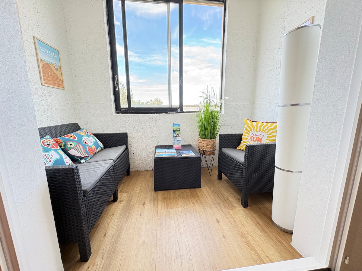 Ovaj studio apartman koji se nalazi na 3. spratu sa pogledom na okean i urednim dekorom nudi vam svu udobnost za idealan odmor. Veliki prozor od 3,80 m omogućiće vam da imate izuzetan pogled na more i balkon od 7 m2 opremljen tendom od bana za jelo i opuštanje. na raspolaganju vam je podrum sa 2 bicikla (1 muški VTC i ženski gradski bicikl), ali možete i da ponesete svoje bicikle i osigurate ih u podrumu.