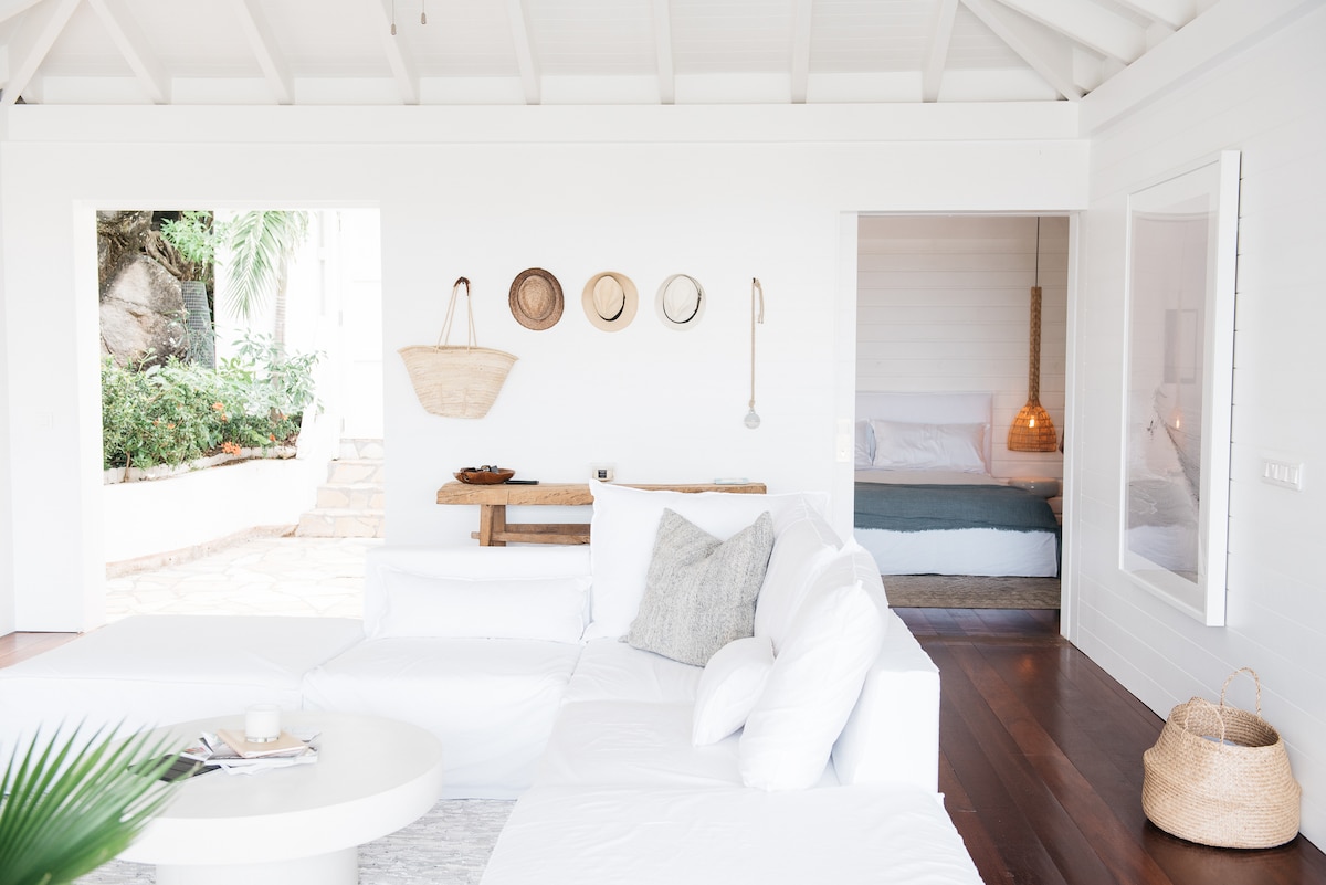 Villa Palmier je zapanjujuća 2 spavaće sobe, 2 kupatila, novorenovirana vila u dobro smeštenoj četvrti Anse Des Cayes. To je san dizajnera koji je upravo objavljen u izdanju Elle Decor France u julu/avgustu. Sa pogledom na okean iz svake sobe, stalnim morskim povetarcem koji duva svuda, i vašim privatnim bazenom, to je savršeno odmaralište na plaži.