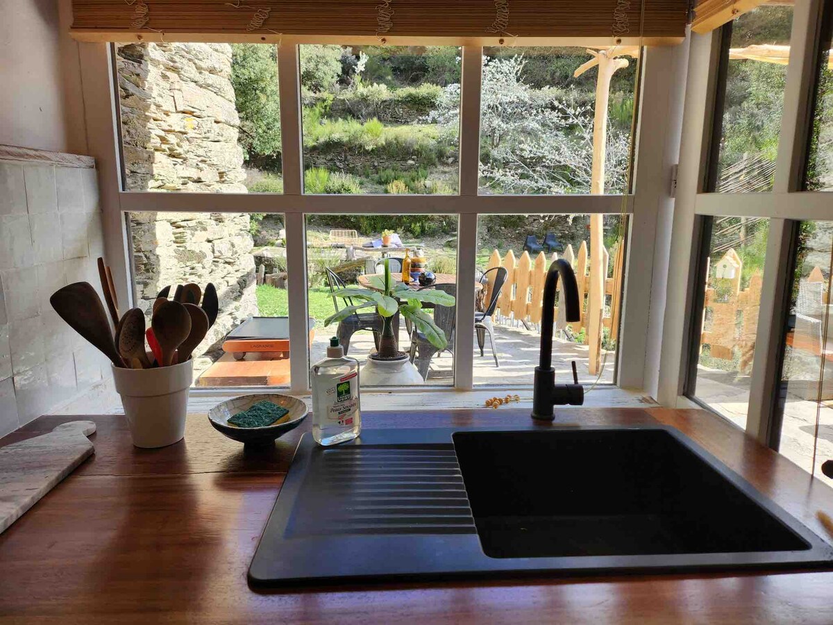 Blaženo mirno i lepo utočište. Renovirana seoska kućica je mala dvospratna kuća savršena za 2 osobe, na veličanstvenom imanju od 94 hektara šume kestena, uzvišenom iskustvu za ljubitelje prirode, koji žele da pobegnu od vreve i vreve, predivnih pješačkih staza, veličanstvenih pogleda. Prirodni mali bazen u sklopu objekta, ali postoji uzvišeno mjesto za plivanje na 9 km. Spavaća soba i grijalica na drva na spratu, kupatilo, odvojeni toalet i otvorena kuhinja u prizemlju. Privatna terasa.