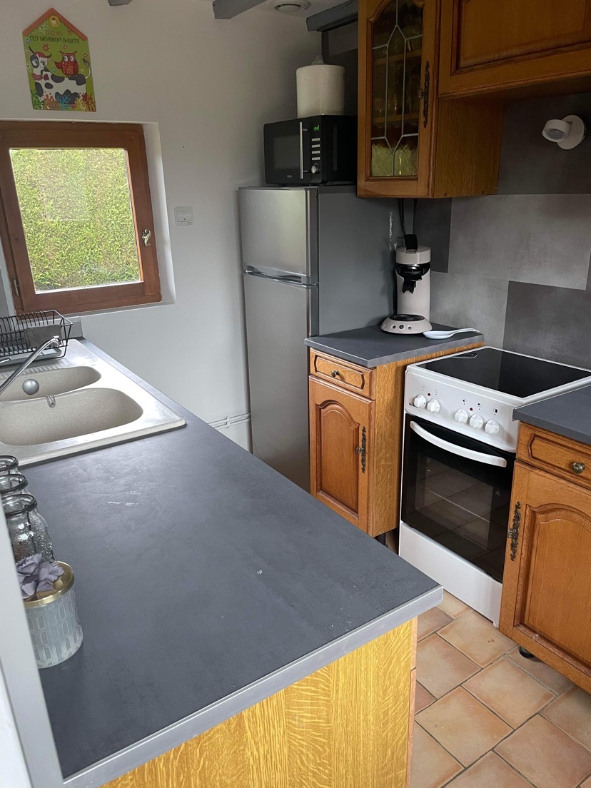 Charmant four à pain ancien en colombages, situé en bord de ruisseau il se compose de : - Salon avec un poêle à bois, - Cuisine, - A l’étage : -salle de douche/WC accessible par une échelle de meunier (voir photos), -chambre avec un lit 160x200 avec vue sur le ruisseau, accessible par une échelle de meunier (voir photos), Chambre et salle de bain ne communiquent pas. Salon de jardin, BBQ, parking privé, bois de chauffage inclus Note autre gite, la Maison de pierres, est à 100m
