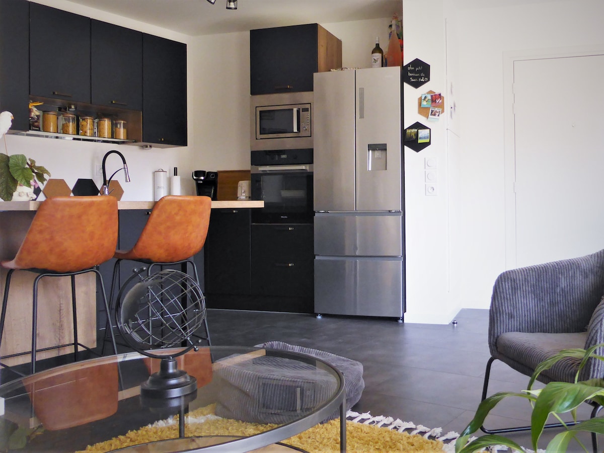 U centru Sent Maloa, nedaleko od železničke stanice, Intra-Murosa i plaža. Rezidencija je nedavna, vaša jedinica od 48m² sa velikim balkonom je dizajnirana kao pravi apartman sa 4* vrhunskim sadržajima. * super opremljena kuhinja * Velika dnevna soba sa kožnim kaučem na razvlačenje * spavaća soba sa udobnom posteljinom + frizerski salon * veliko kupatilo sa spoljnim prozorom * zatvorena garaža Fiber internet je povezan, smeštaj je dobro opremljen za rad na daljinu za kablovsku + Ethernet mreža