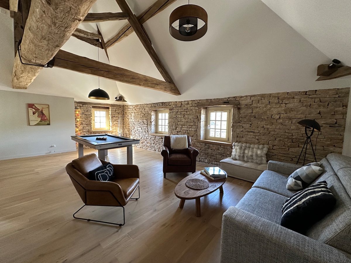 Nudimo vam utočište mira u srcu Burgundije u Sent Mard de Voksu, 25 minuta od Šalona i 30 minuta od Boana. Miran i opuštajući smeštaj u starom ambaru koji smo u potpunosti obnovili. Gosti mogu da uživaju u pešačkim stazama koje prolaze u podnožju smeštaja. Ako ste ljubitelj vina, na raspolaganju vam je put Grand Kru koji prelazi najprestižniji deo burgundskog vinograda.