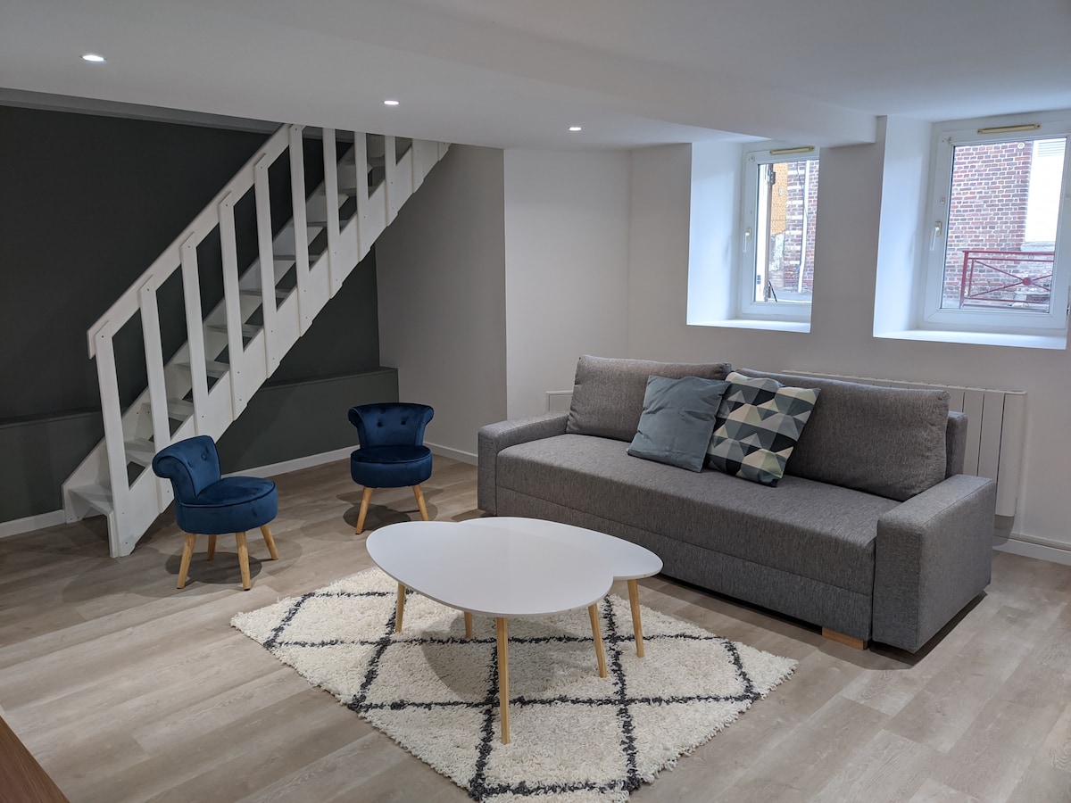 Zadovoljstvo nam je da vas ugostimo u našem prelijepom stanu od 65m², koji se idealno nalazi u veoma mirnom području Bovea. Ovaj moderan i svijetao stan je savršen za opuštajući odmor ili profesionalni boravak. U veoma mirnom području samo 5 minuta od centra grada, 15 minuta od aerodroma Bovaj i strateškog položaja između Pariza (1 sat) i Amiensa (40 minuta). Uživajte u miru stambenog prostora u blizini sadržaja u centru grada.
