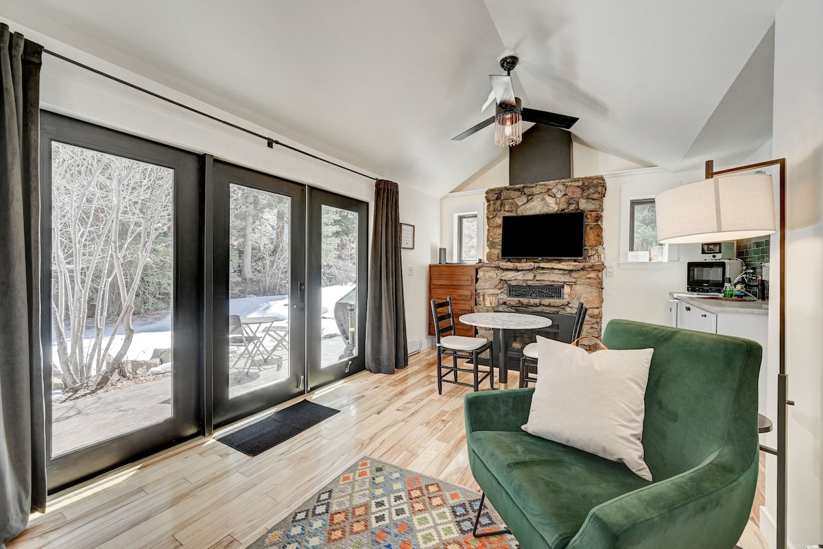 This stylish, waterfront cabin is perfect for a romantic getaway or lone traveler, at Water & Stone Retreat in Idaho Springs Colorado. Stunning mountain views, lush forestry & a bustling creek just off the back patio bring in the peace and tranquility only found in nature. Cozy and inviting with heated bathroom floors, and a gas fireplace. Just 5 minutes from the the historic town of Idaho Springs. 20 mins to ski slopes! 35 mins to downtown Denver! No pets allowed.