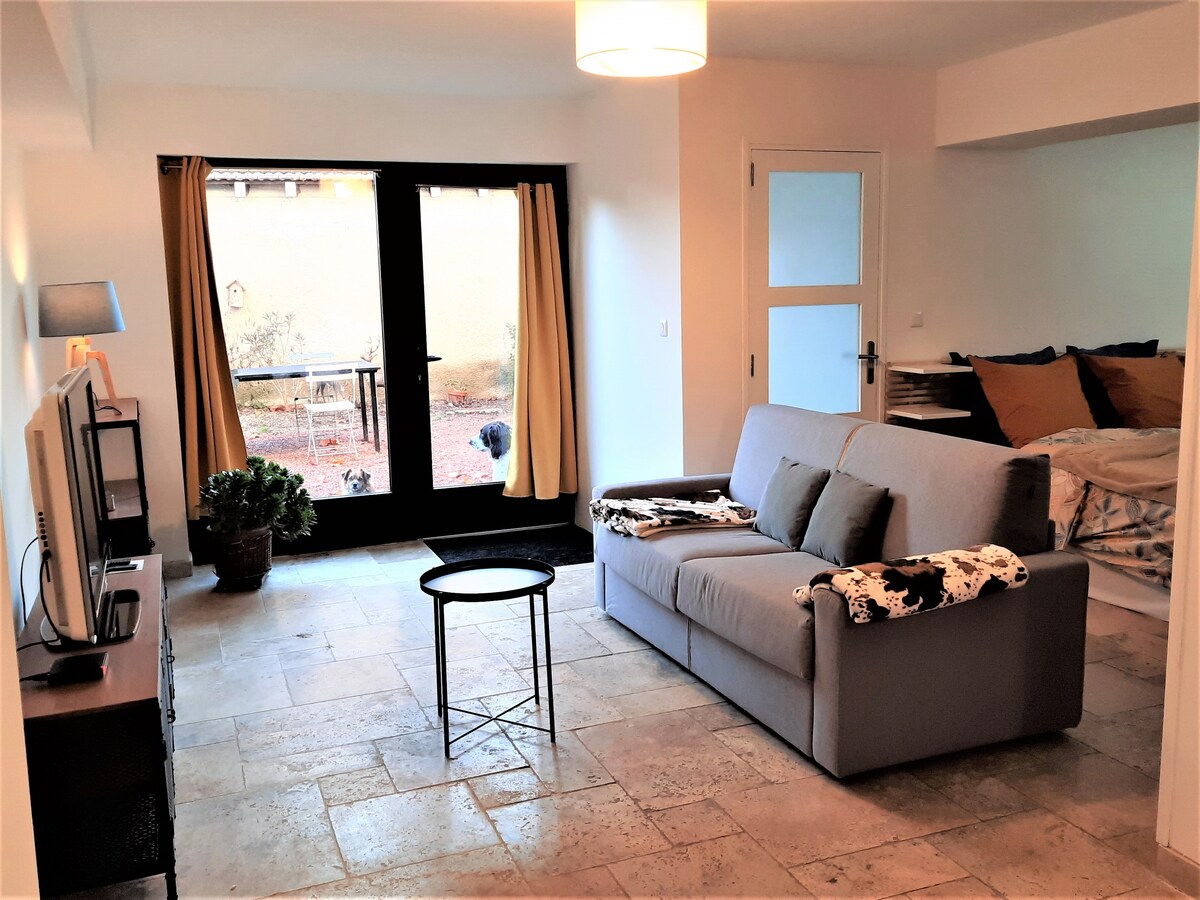 Studio (pour 2 personnes) de 40m2 au RDC d'une grange indépendante de notre maison. Il est équipé d'une cuisine, d'un lit de 160, d'une salle de bain avec toilettes, d'un coin salon TV avec canapé convertible, d'une buanderie, d'un extérieur avec table et chaises et d'Internet. Stationnement possible dans la cour fermée ou dans la rue. À proximité du village, des bus et du tramway T2, des axes autoroutiers, du parc Eurexpo et à 10km de Lyon. Le linge de toilette, café, thé... sont à disposition.