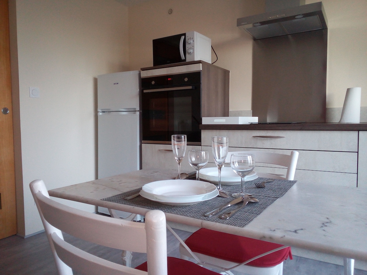 Dobro došli u ovaj udoban i svetao apartman, idealno smešten u Rošforu, na samo 15 minuta hoda (ili 5 minuta vožnje autobusom ili automobilom) od termalnih kupališta i centra grada. Savršeno pogodan za smeštaj gostiju spa centra, gostiju, radnika ili komercijalnih putnika, ovaj smeštaj je osmišljen da ponudi udobno i opuštajuće iskustvo, kao kod kuće. Imajte na umu da su u glavnoj ulici i susednim ulicama dostupna besplatna parking mesta.
