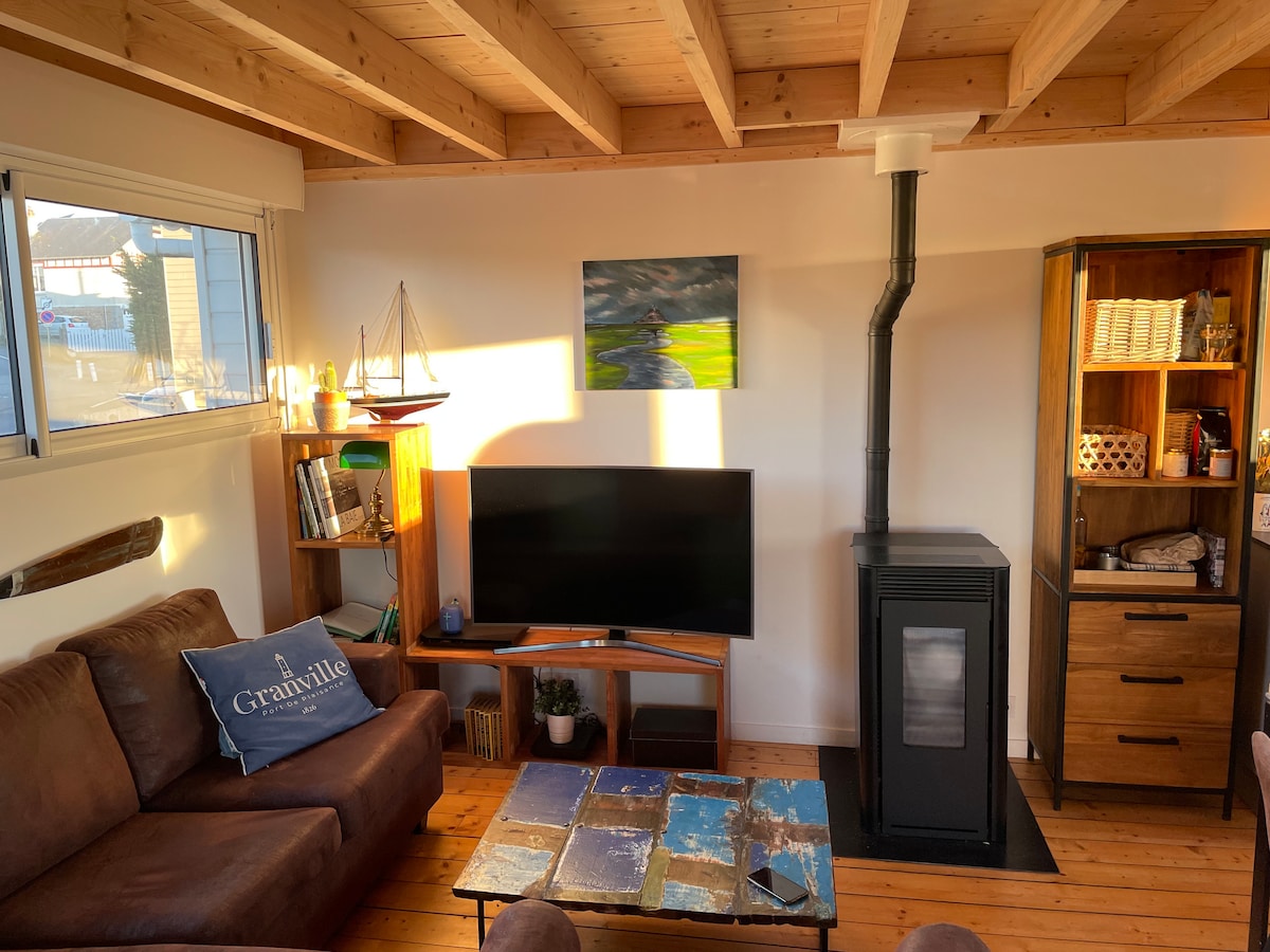 Šarmantna ribarska kuća u gradu , drveta tipa T3, vrlo dobro opremljena i izolovana. Atmosfera i uredan morski dekor sa drvenom visećom terasom na 2 nivoa i terasom za parket. Dnevni boravak sa šporetom na pelet i kožnim kaučem za prijatnu i toplu atmosferu čak i van sezone. Nalazi se u mirnoj ulici 100 metara od sela sa prodavnicama, 300 metara od plaže i kazina. Grenvil je udaljen 4 km pored obalnog puta i obližnjeg Mon Sen Mišela.