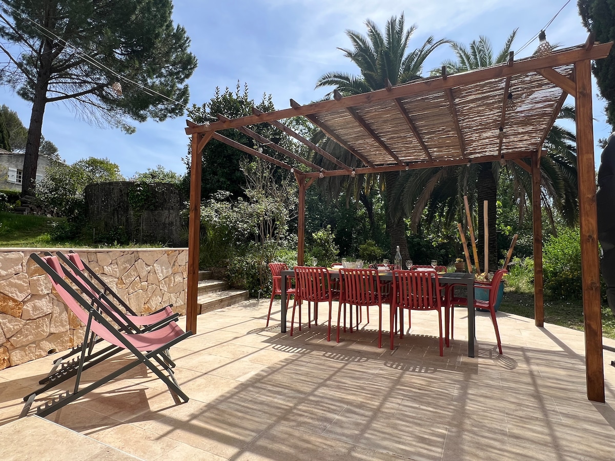 🌿 Vaša mirna oaza za opuštanje od svakodnevnog stresa. 🦜Bićete kao u brvnari usred šume , uljuljkani pjesmom ptica 15 minuta od aerodroma u Nici. ✨ Otkrićete Francusku rivijeru u roku od 30 minuta (Nica, Antibe, Kan, Monako, Eze, Menton ...) 🧘♀️Vaša privatna bašta okružena bambusom će vas uroniti u okruženje za podmlađivanje. Otvoreni đakuzi Otvoren od marta do decembra.