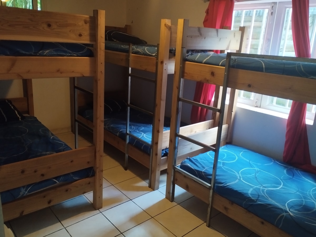 Bonjour et bienvenue dans notre chambre individuelle avec sanitaires en commun dans le gîte d’étape et de séjour LES CARILLONS . Situé au centre ville du village proche des départs de sentier, gare routière, hypermarché, boulangerie, distributeur et marché forain le dimanche. linge de maison fournie ( pas les serviettes). Proposition de repas et petit déjeuner le week-end à partir de 4 demandes . Restaurants à côté de chez nous pour les repas et petit déjeuner . L’Entrée est autonome