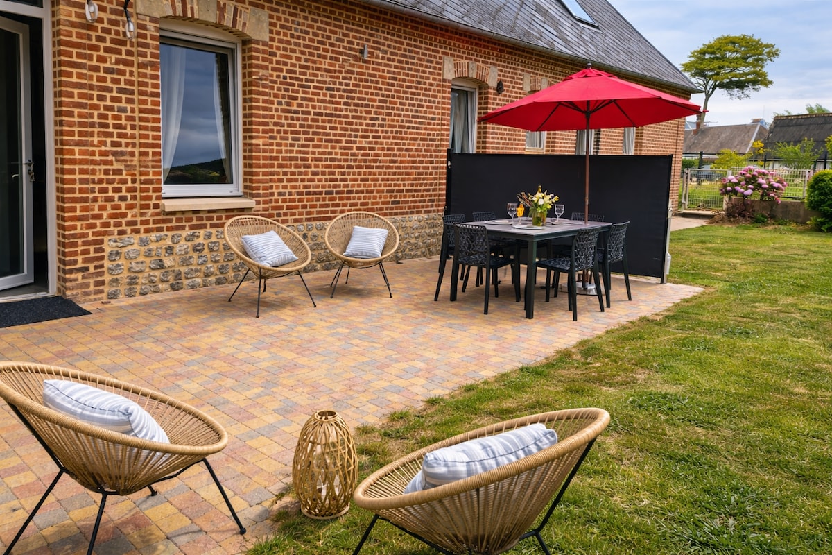 Kuća sa terasom koja se nalazi na selu na mirnoj lokaciji u podnožju terena za golf (18 rupa). Plaže udaljene 6 km od veulettes sur mer,saint valery en caux,elektrana za nuklearnu elektranu Paluel udaljenu 5 minuta. Opremljena kuhinja (rerna, mikrotalasna rerna, šporet, aparat za kafu, mašina za pranje veša. 1 soba,dnevni boravak sa TV-om i Wi-Fi.1 spavaća soba sa 2 kreveta *190,2 spavaće sobe 1 krevet za 2 osobe, 1 kupatilo sa tušem i duplim umivaonikom. Baštenski nameštaj, roštilj. Rezervacija od subote do subote u julu i avgustu