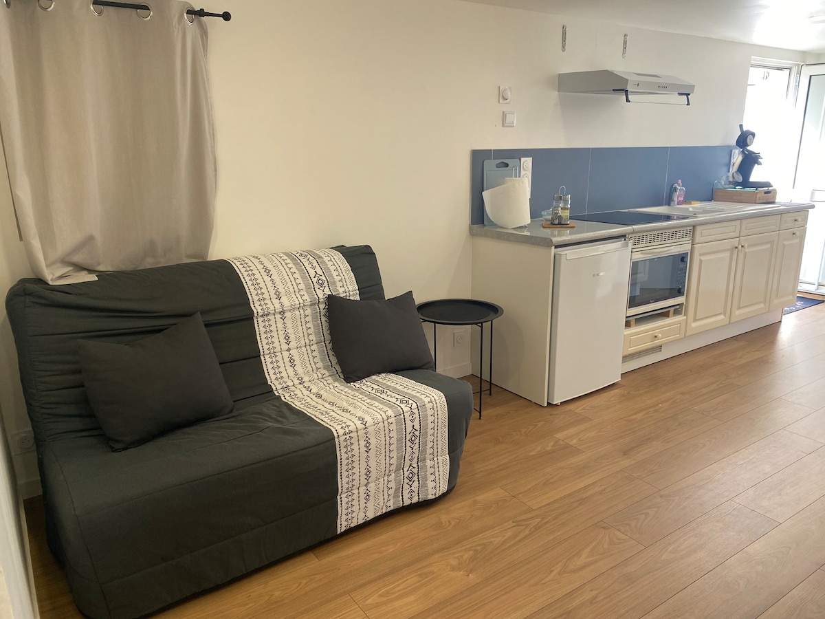 Ancien pigeonnier de charme au calme, parfaitement situé, à 2 pas des transports en commun (2 lignes de tramway à 3 min, lignes de bus et busway). Idéal pour les personnes en vélo car stationnement sécurisé dans le jardin. Le logement comprend une salle de bain, une kitchenette équipée (micro onde, cafetière, bouilloire, frigo, plaques), une chambre à l'étage avec un grand lit et un lit une place. Terrasse extérieure privative travaux de façade jusqu'au 20/4