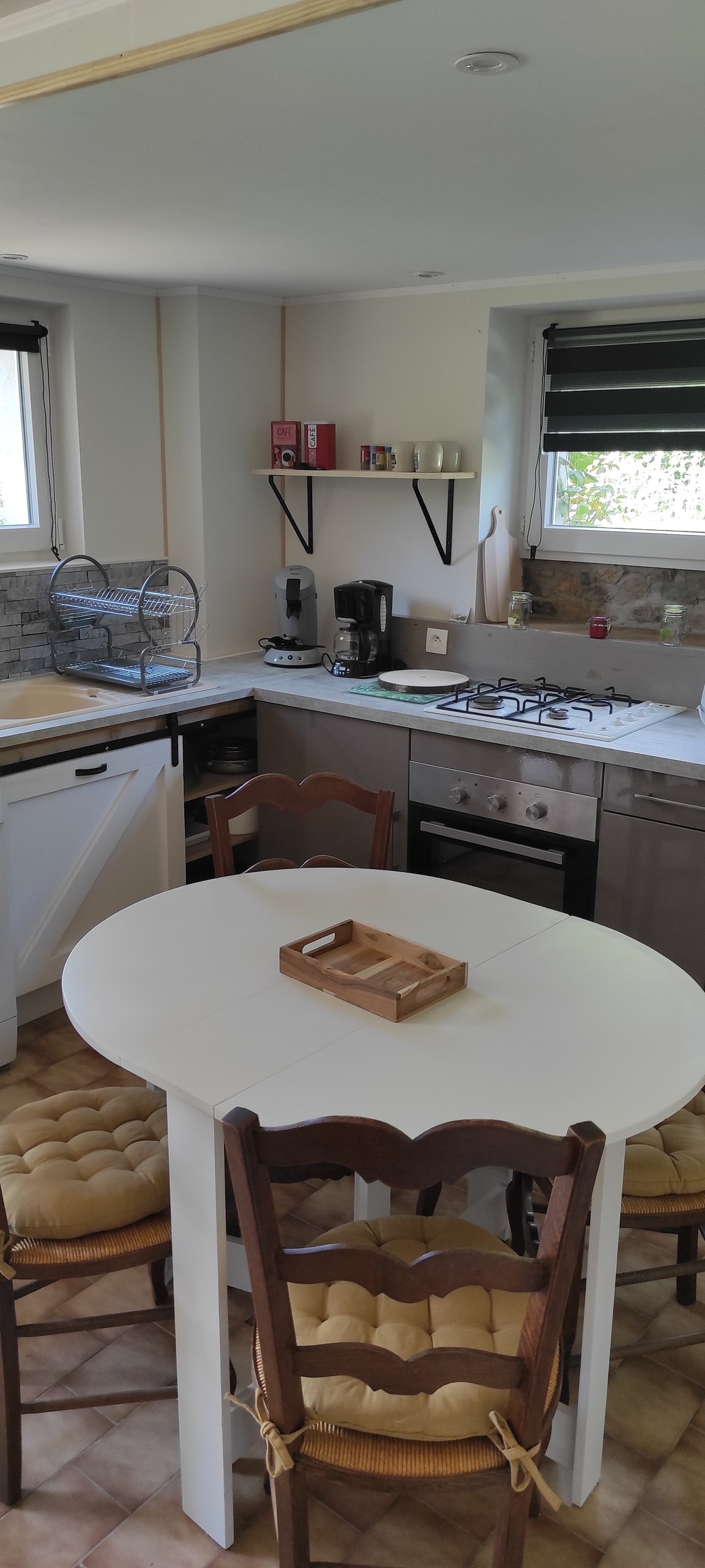 Seoska kućica se nalazi na svom posjedu od nešto manje od 2 hektara sa malom šumom pozadi i nalazi se na lokalnim voćnjacima jabuka. Postoje dvije dvokrevetne spavaće sobe (obje spavaće sobe imaju ventilatore za hlađenje za ljeto i grijalice za zimu), kupatilo, potpuno opremljena kuhinja sa mašinom za pranje veša, mašinom za pranje sudova, rernom, pločom za kuvanje, frižiderom, mikrotalasnom rernom itd. Otvoreni restoran i udoban salon. Postoji francuska i engleska TV sa satelitskom televizijom, Wi-Fi internet i natkrivena terasa koja je okrenuta prema jugu za restorane na otvorenom.