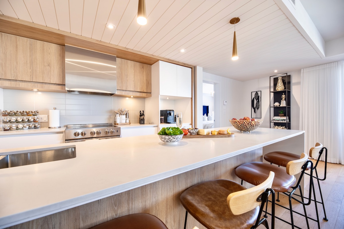 Modern condo steps from village