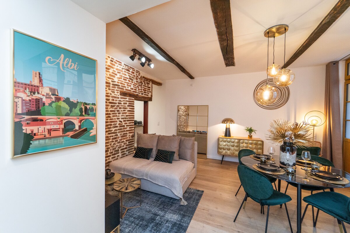 Topao i minimalistički, dođite i otkrijte naš prelijepi novouređeni stan sa terasom sa pogledom na zvonik katedrale, u maloj zgradi na drugom spratu bez pristupa liftu. Samo za parove, za porodice ili grupe prijatelja, prepustite se zavođenju da otkrijete naš prelijepi grad Albi. Idealno se nalazi u centru grada, nedaleko od Place du Vigan, katedrale, muzeja Toulouse Lautrec, Palais de la Berbie i mnogih drugih mjesta koja treba posjetiti.