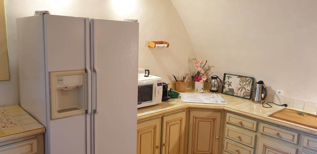 Location d'un charmant pavillon, gîte, appartement entier situé au cœur du parc du Château Le gîte de 4 personnes est composé de - Deux chambres avec deux salles de bain privatives Une chambre RezDeChausée avec 1 lit double et sa salle de bain & une chambre à l'étage avec 2 lits simples et sa salle de bain) - Une cuisine équipée et une Terrasse extérieure (piscine partagée à proximité sécurisée) - Un salon et une partie repas Serviettes & draps fournis